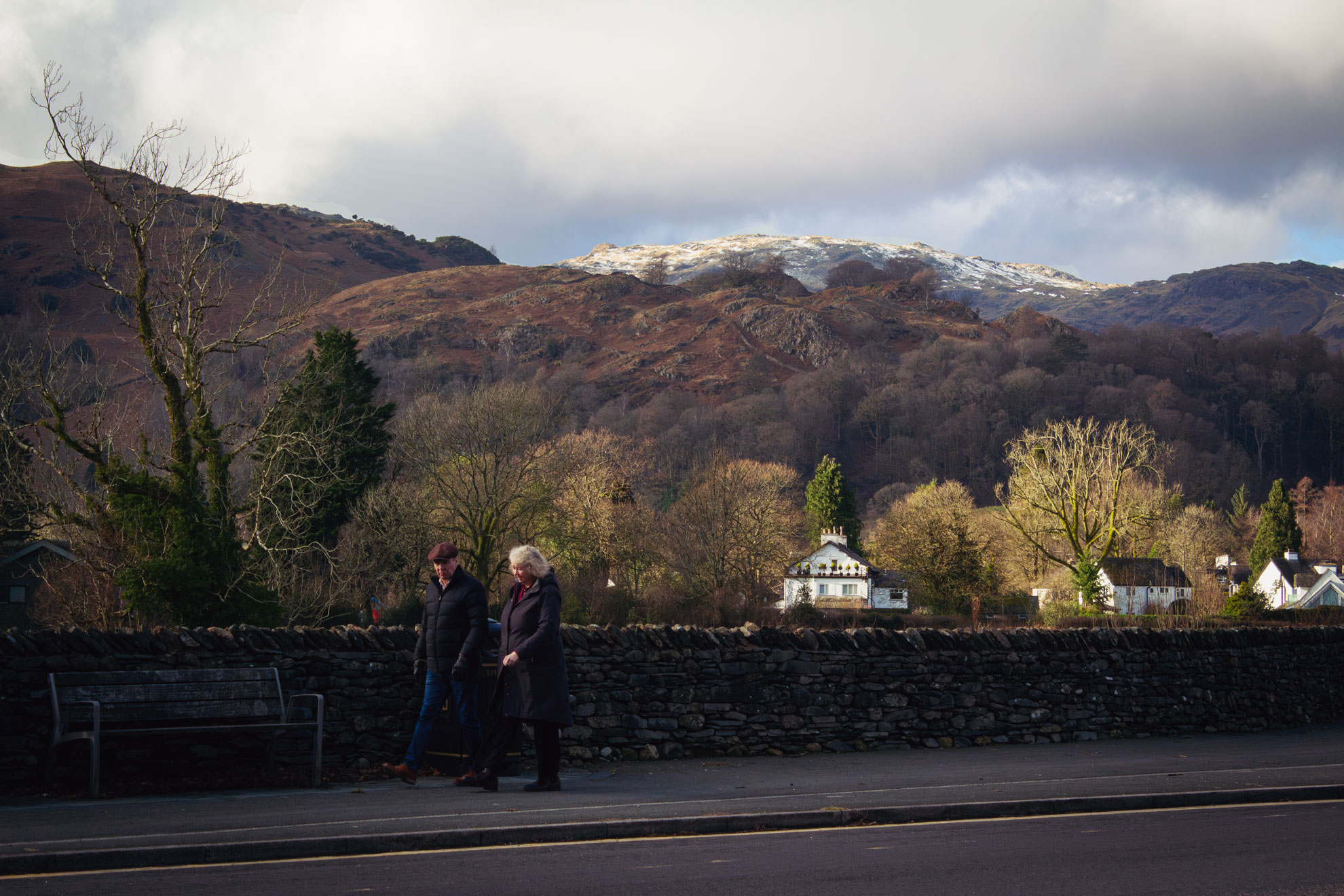 I took myself on a long walk around the lake today to capture the light. The weather has been mostly grey this month, with spots of clear air and some snows and we are now a day post Storm Eowyn. I think village has done rather well in the storm with not many branches down, though there are a fair few broken trees in the woods across from The Daffodil. The atmosphere was crips and airy and there is still some snow in places. I passed many people on the paths around Grasmere and also topped for a quick coffee at Tweedies where I made plans to meet with a local to talk about his life as a stonewaller.
